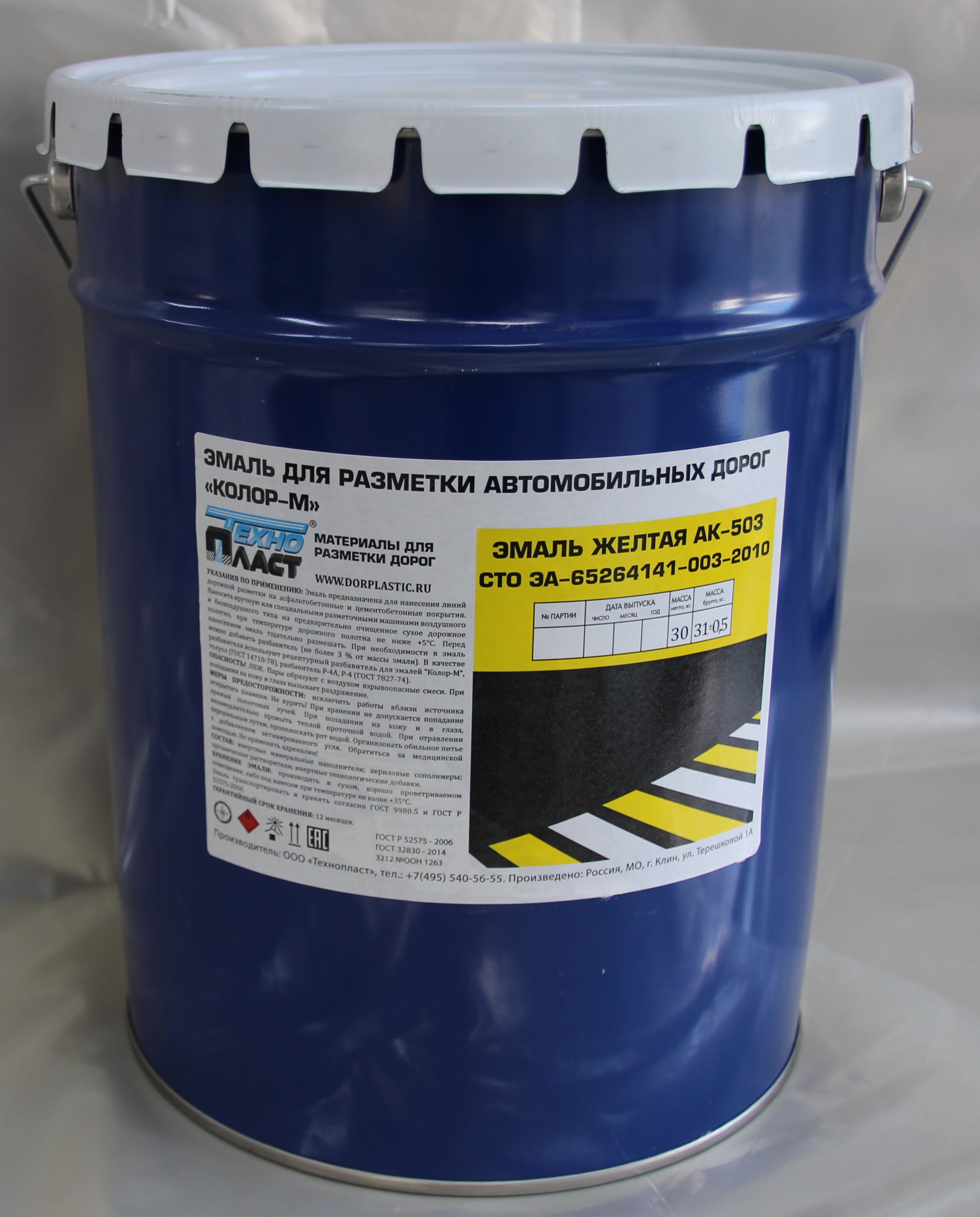 Эмаль краска для дорожной разметки АК-503 Желтая Фасовка 30 кг во Владивостоке