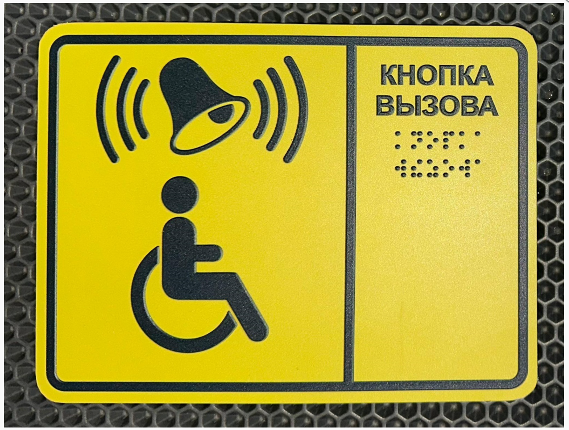 Табличка "кнопка вызова " для инвалидов желтая шрифт Брайля во Владивостоке во Владивостоке